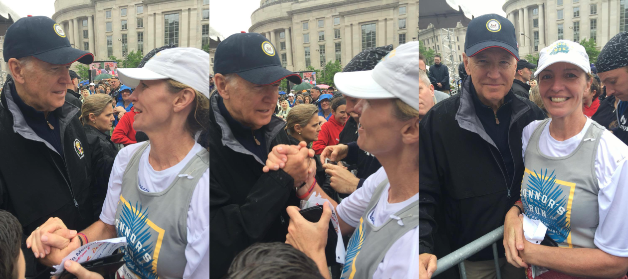 Liz had an opportunity to participate in the US's National Brain Tumor Society's 'Race for Hope' today (Sunday 1st May). This event is part of International Brain Cancer Awareness Week activities. US Vice President, Joe Biden attended and accepted an award in honour of his son Beau who lost his life to brain cancer. Liz & the Vice President had a chance to meet and exchange stories about their beloved sons and their commitment to each doing what they can against this terrible disease.