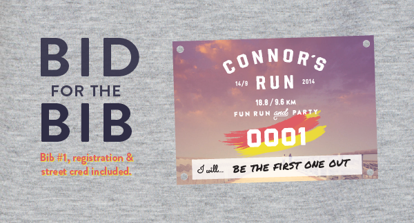 The successful bidder will not only have the honour of wearing the #1 bib for Connor’s Run 2014, but will also have their entry fee included. The proceeds from the auction will be split 50:50, going to both the BGS rowing community and to the RCD Fund for research, care and development projects in brain matters. If you’d like to place a bid, send us an email to be in it to win it. Your bid will be included in the final auction on Saturday.