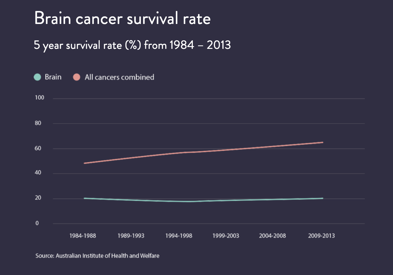Currently, brain cancer kills more children than any other disease. Only five per cent survive high grade tumours and survival rates have barely changed in the last 30 years.