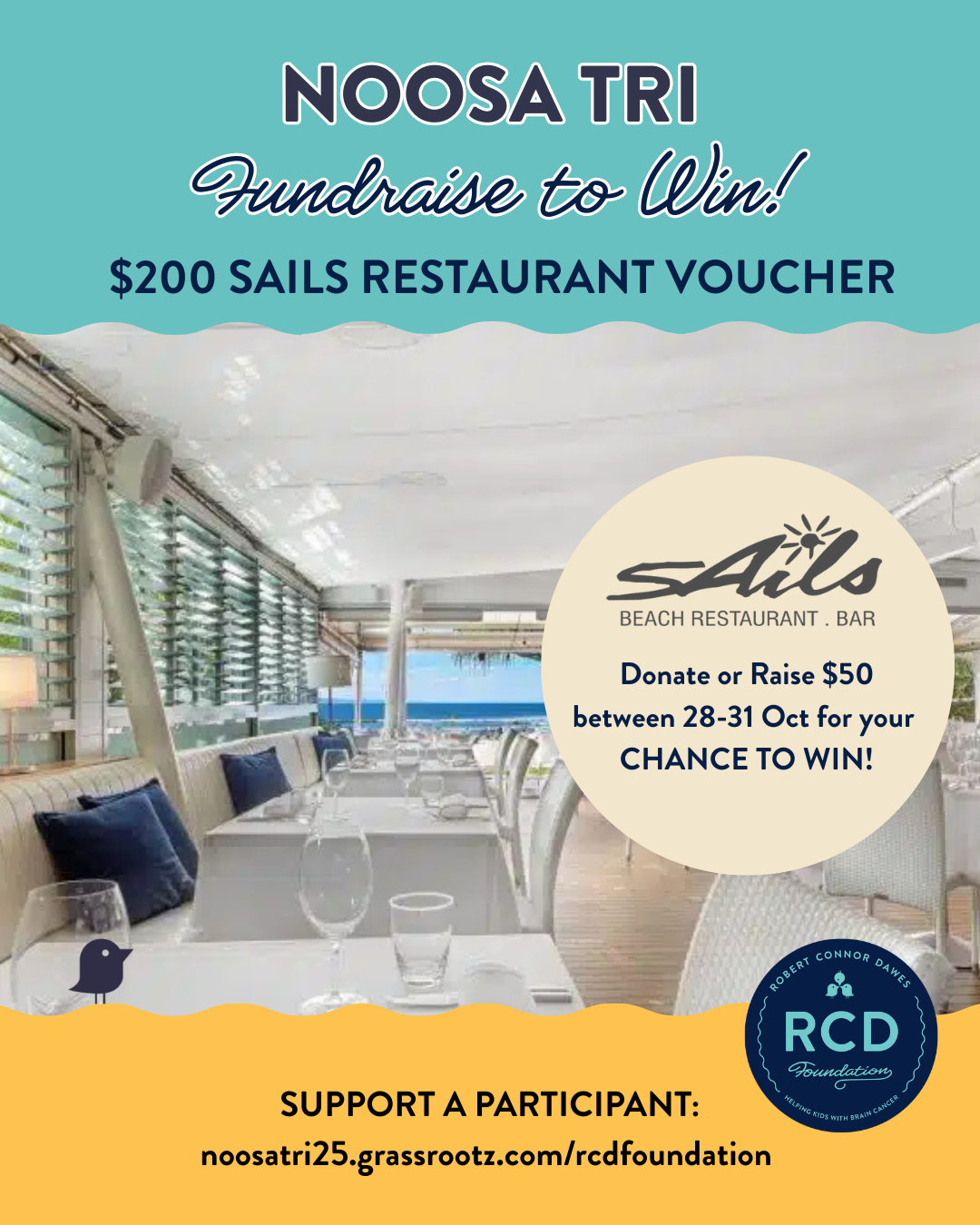 Donate, raise or purchase raffle tickets totalling $50+ between Oct 28–30 and go in the draw to win a $200 Sails Restaurant voucher!